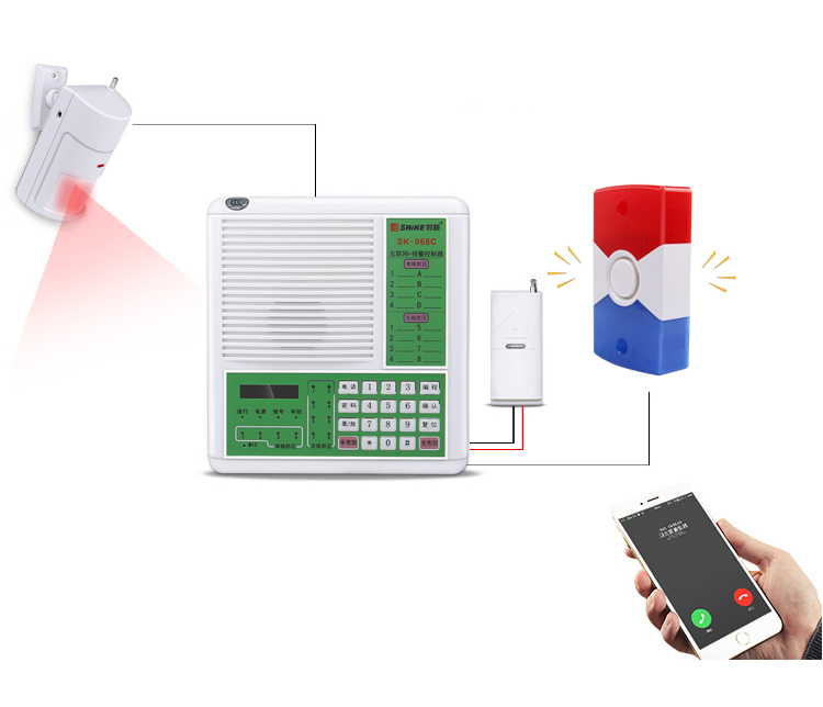> Alarm related products:Wired door magnetic,alrm bell,wireless emergency button,alarm remote controller.