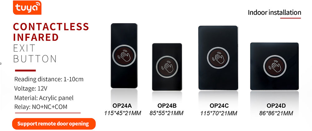 OP24 series Exit Button is no-touch infrared exit button with Tuya smart APP.