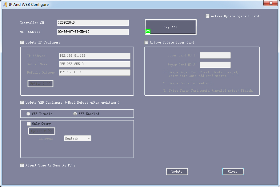 Access Control Board how to Setup Web Controller function: