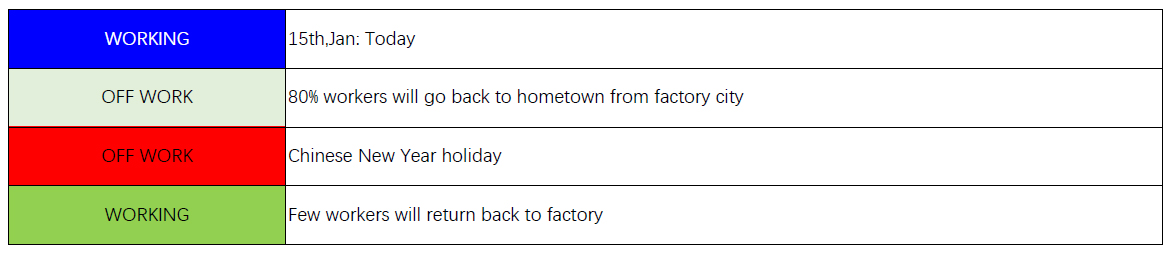 Due to COVID-19 Virus, Chinese Goverment control all transportation, workers will go back to hometown earlier than usual.