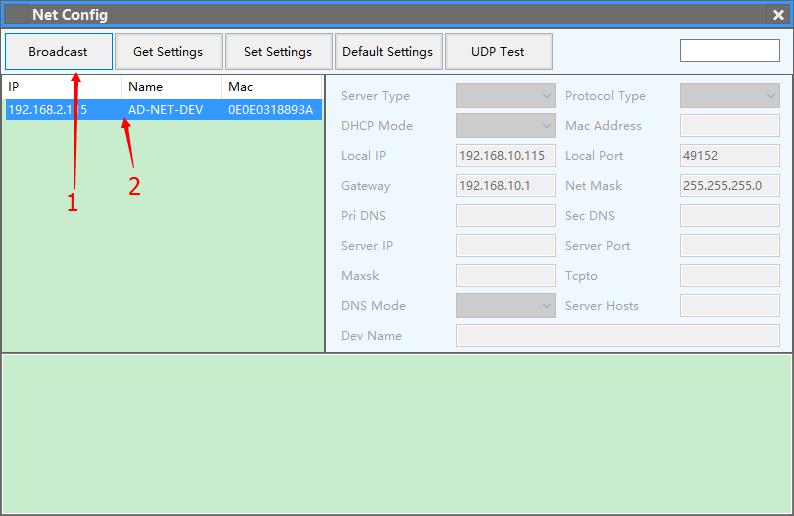 2.Choice “Net Interface”, click “BROADCAST” of the menu;