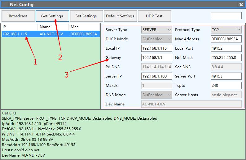 4.Get the TCP/IP Parameters of reader: