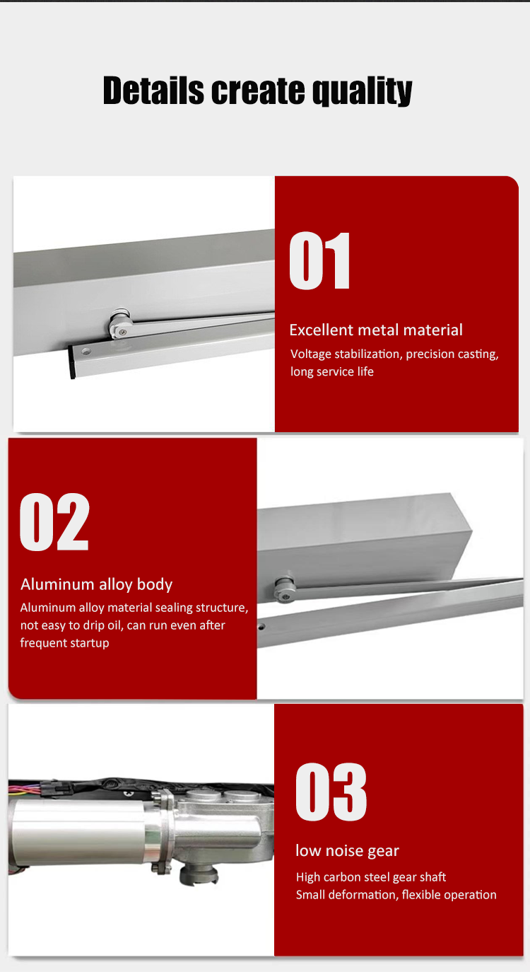 2. Brushless motor with self-locking, a long life span, and energy conservation.