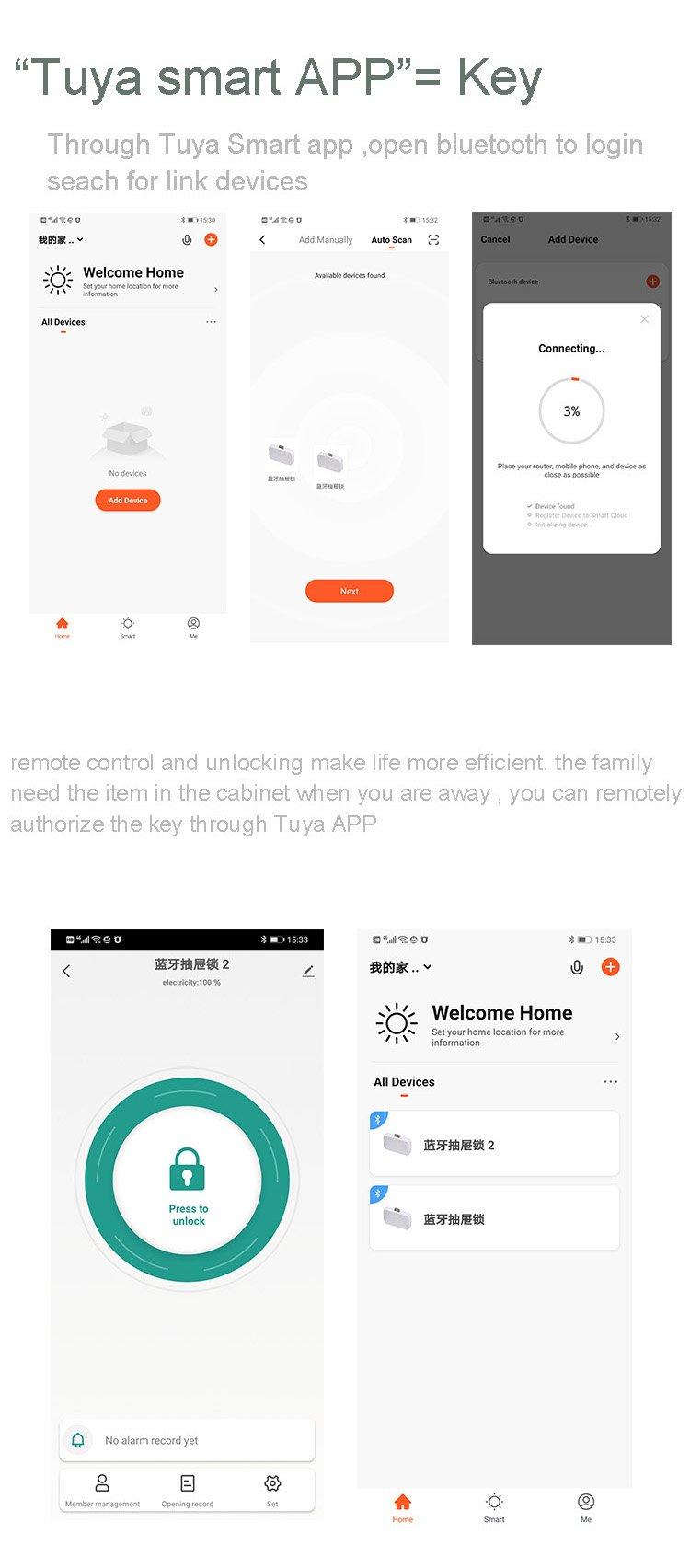 Smart Bluetooth Drawer Lock with Tuya Application