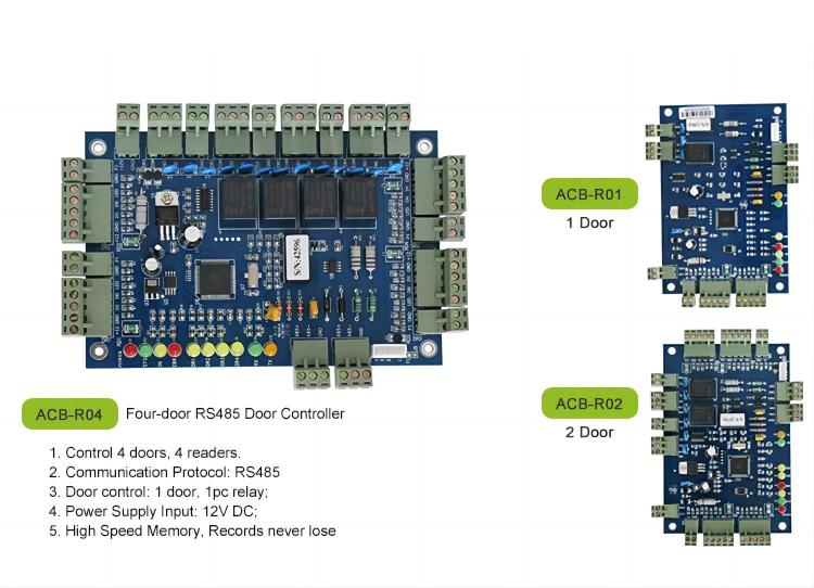 | Description | Control 1 door, get in and out door by swiping card, or get in by swiping card and get out door by button | Control 2 doors, get in and out door by swiping card, or get in by swiping card and get out door by button | Control 4 doors, get in the door by swiping card, and get out door by button |