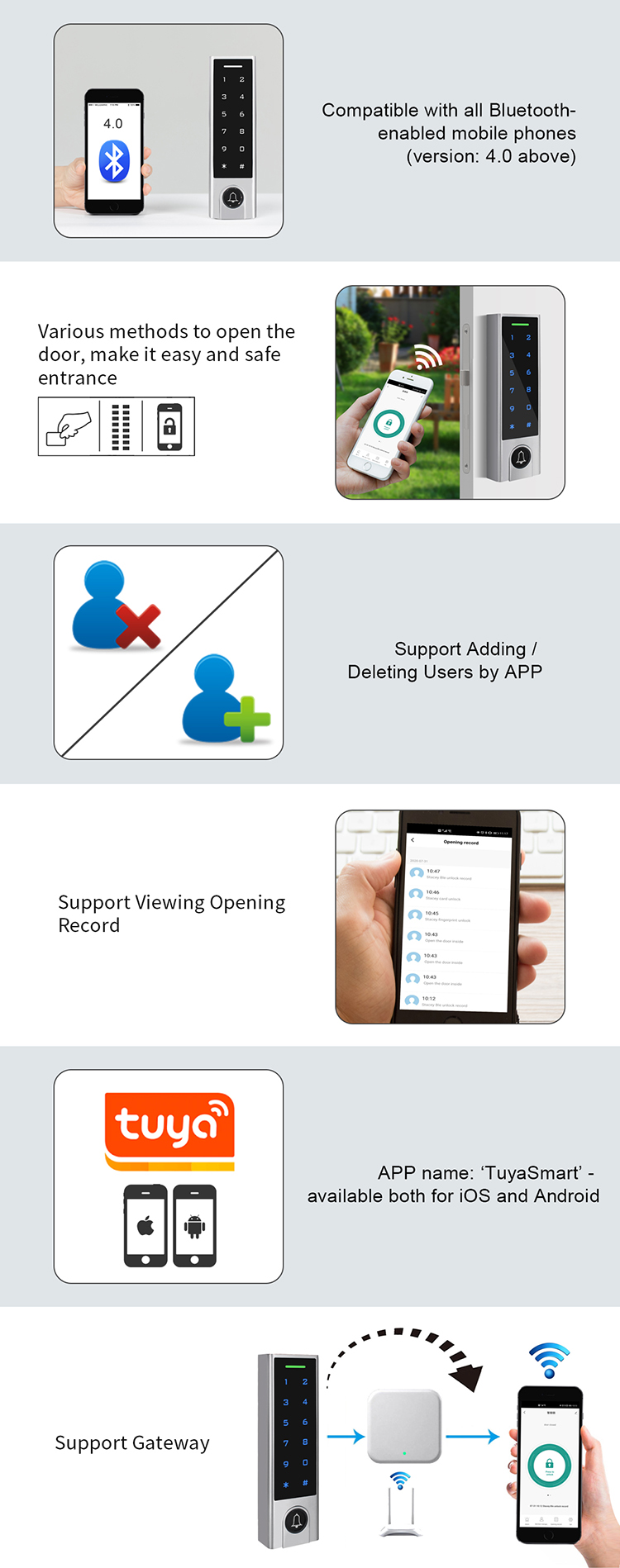 | User Capacity | Hardware User: 1000 APP User: 100 (including 255 card/ PIN users) |