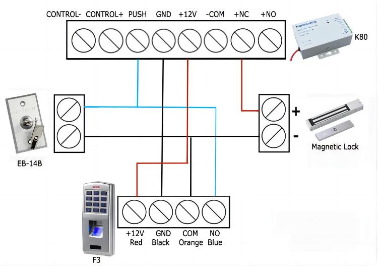 > Internal electric lock control directly, the out switch, magnetic detection(independent control mode)