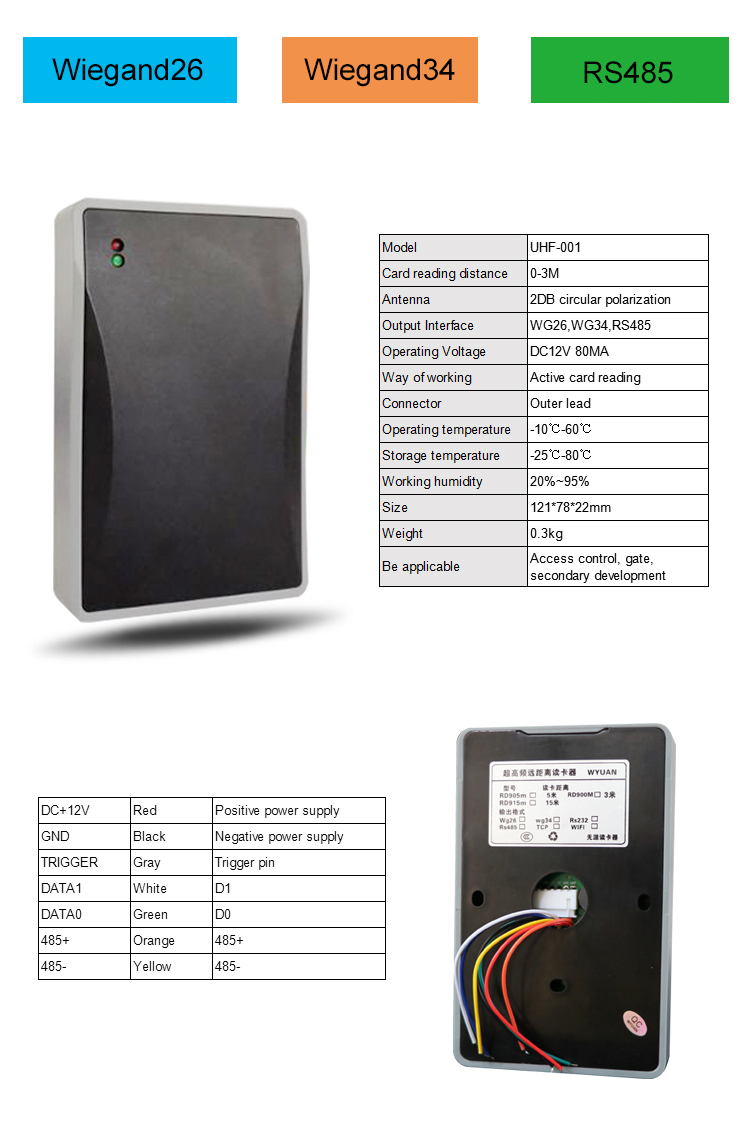 | Default communication interface | Wiegand 26 /Wiegand 34,RS232/RS485 |