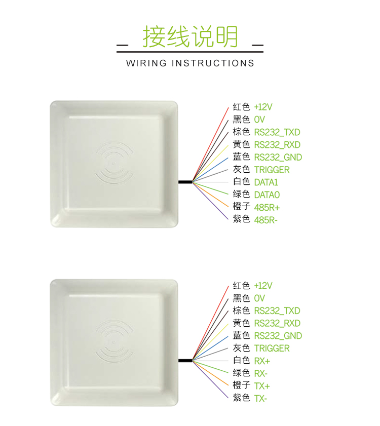 该RFID远距离读卡器兼容Wiegand 26bits/Wiegand 26bits/RS485(TCP/IP)/CANBUS标准格式的设备使用。