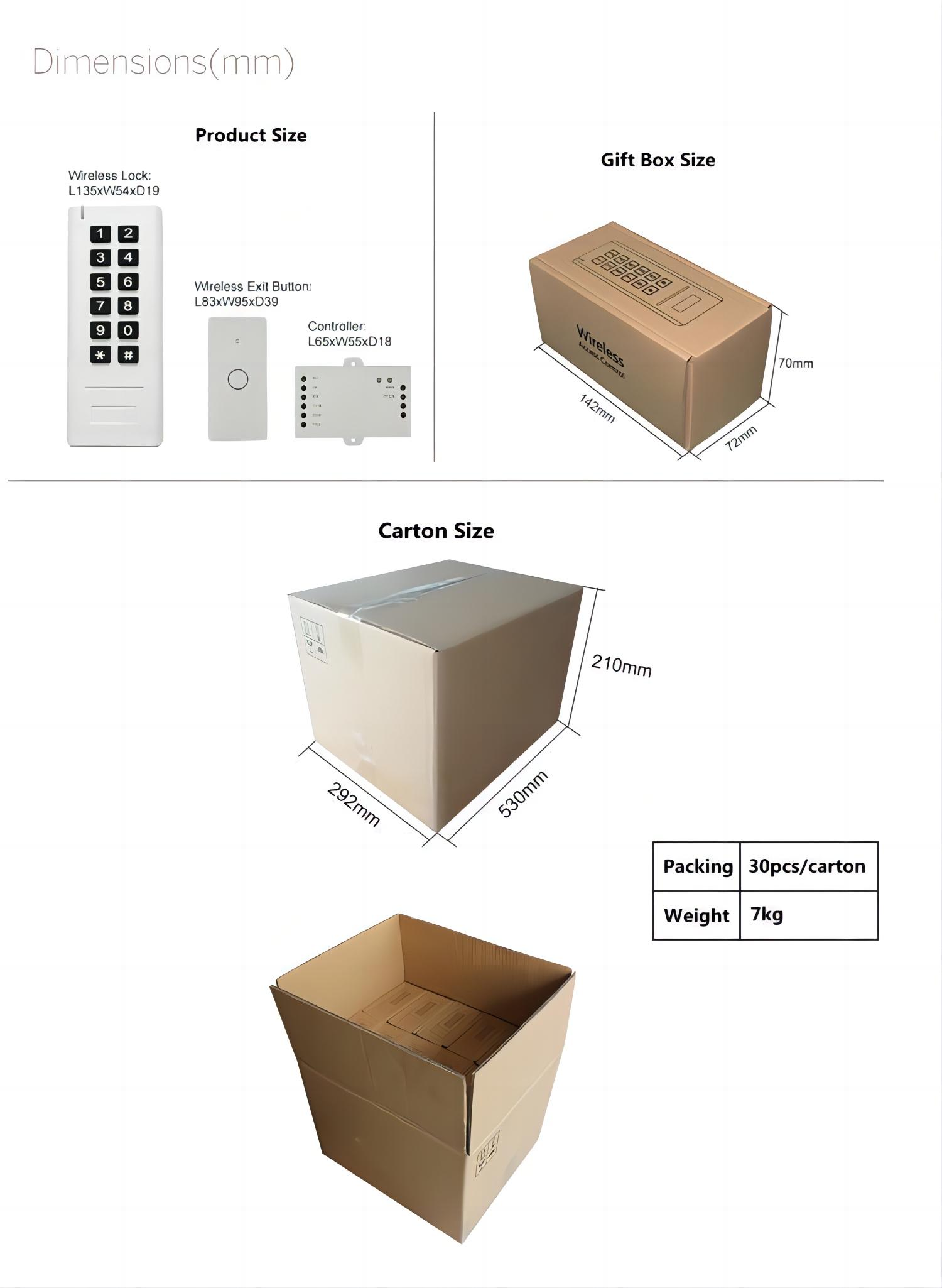 | 无线出门按钮: L83 x W40 x D16(mm) | |
