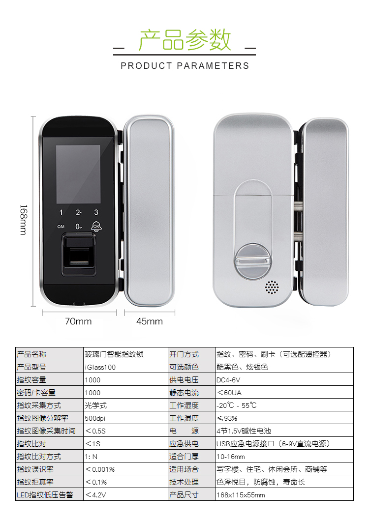 KB308-Tuya 涂鸦蓝牙玻璃门指纹锁