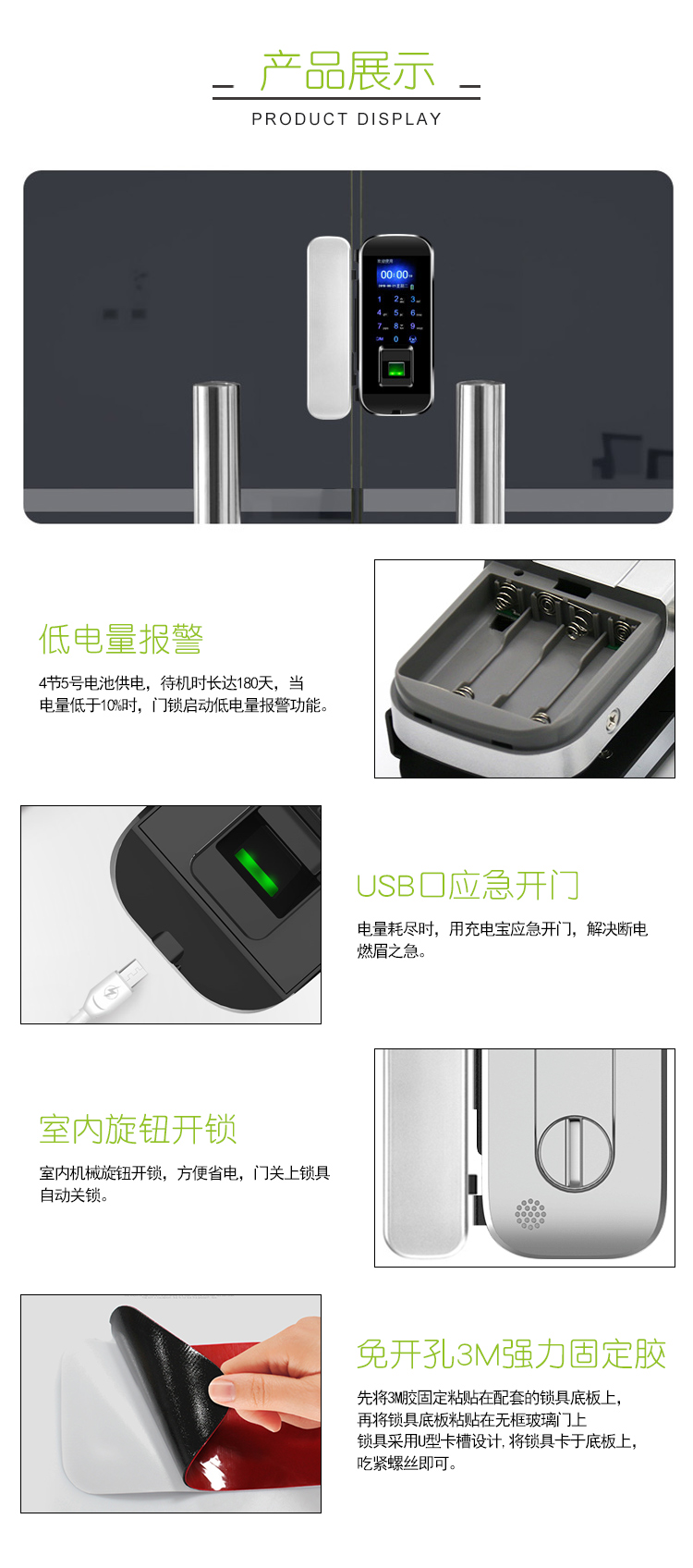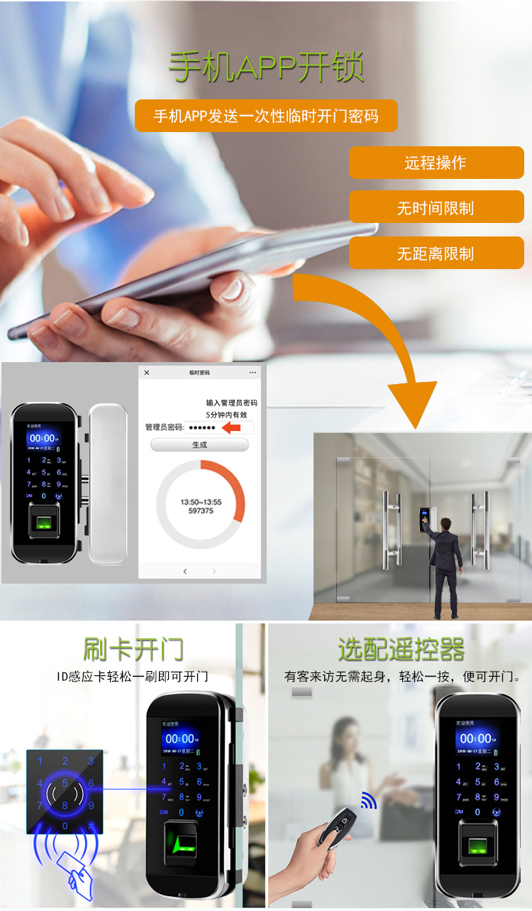 KB668-Tuya 涂鸦APP 玻璃门指纹锁