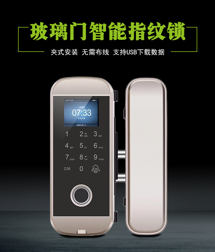 KB668-Tuya 涂鸦APP 玻璃门指纹锁