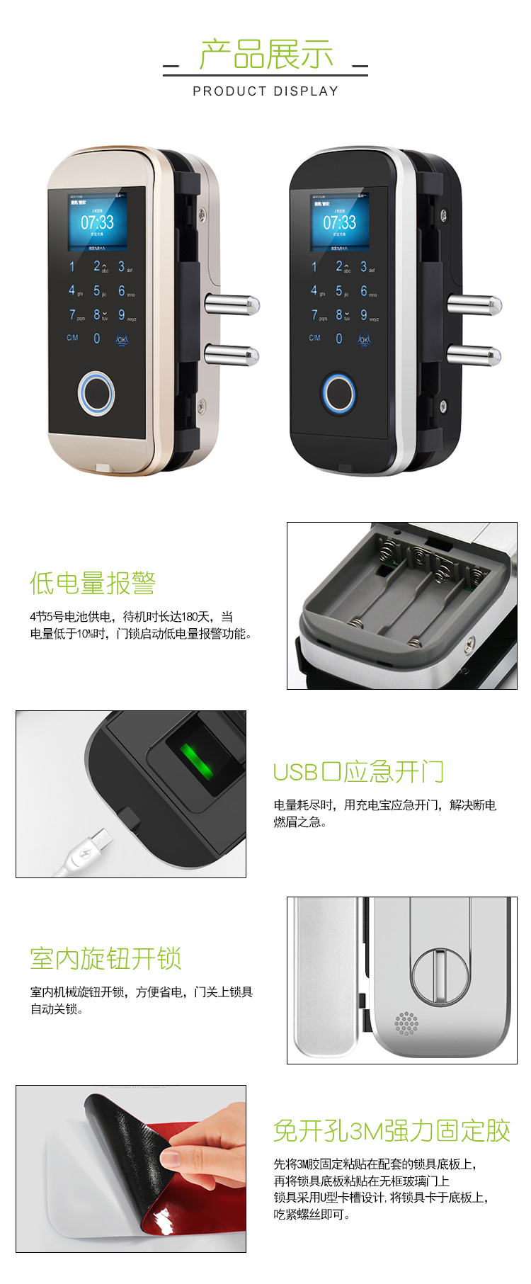 KB668-Tuya 涂鸦APP 玻璃门指纹锁