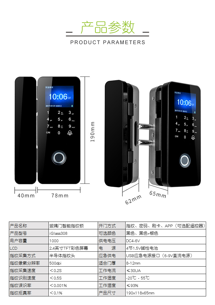 iGlass308 玻璃门指纹锁