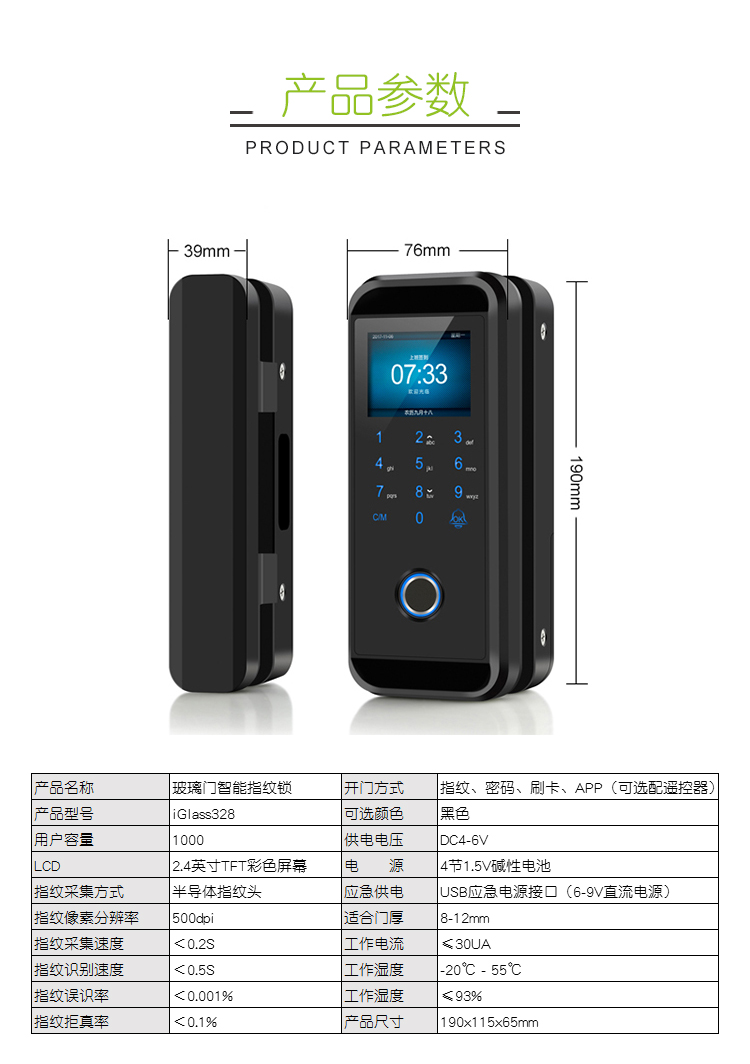 iGlass328 玻璃门指纹锁