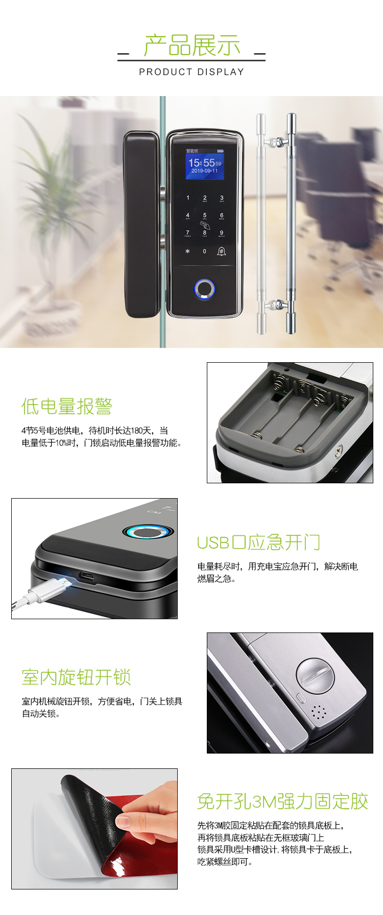 玻璃门指纹锁