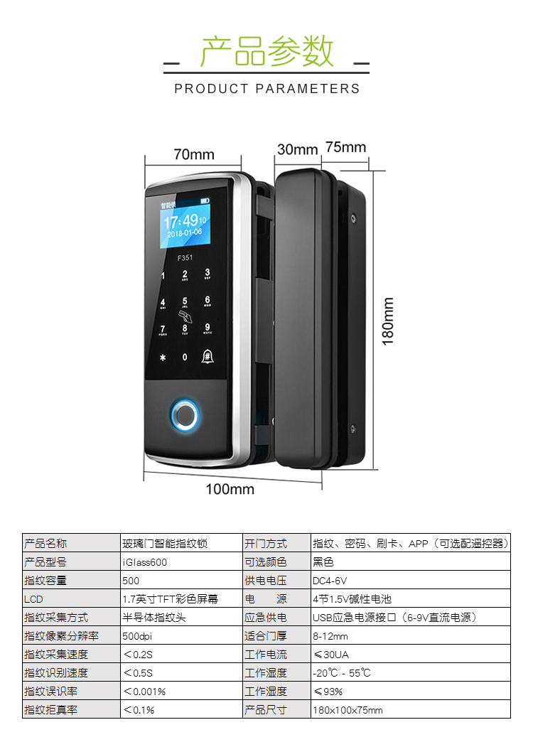 iGlass600 玻璃门指纹锁