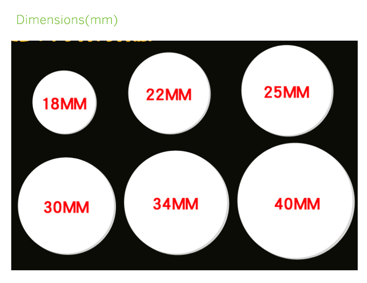 产品尺寸:直径25MM (可订做18MM,20MM,23MM,30MM,35MM尺寸)