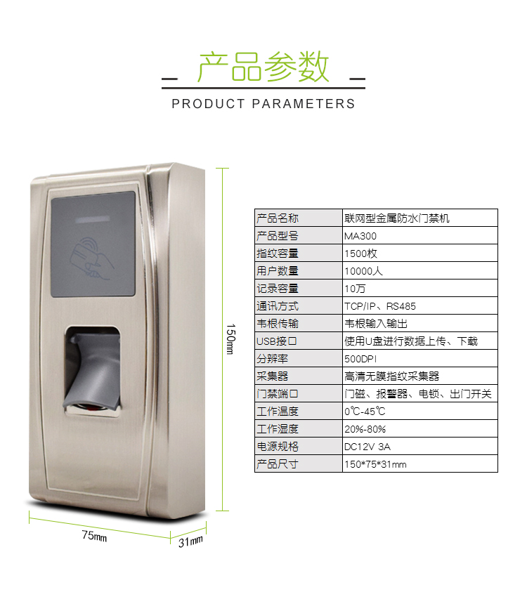 MA300 金属防水指纹门禁机